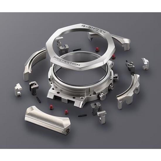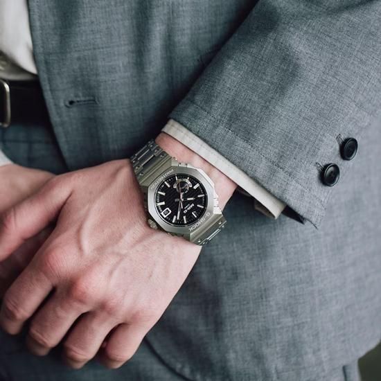 G-SHOCKの薄型モデル2100シリーズにこだわりの金属素材の採用と丹念な仕上げを施してつくりあげたMR-Gです。