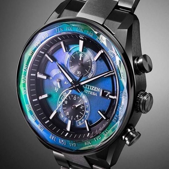 風防のサファイアガラスがベゼル部分まで覆いつくす特殊な構造を開発したことで、文字板だけでなくベゼル部分にも構造色フィルムを使用することが可能になったモデルが登場。