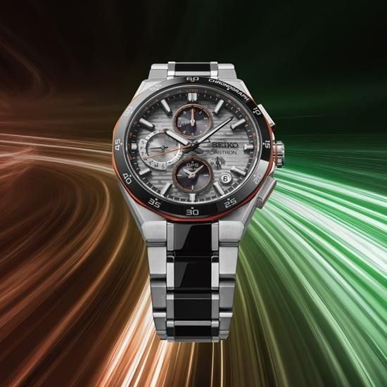 ダイヤルには、線が断続的に繋がる「ホリゾンタルパターン(横縞)」の新規型打ちを採用することで、光が走り抜ける表現をしています。さらに、二層構造のベゼルは、セラミックスのパーツと多角形状の飾り縁を組み合わせた、限定モデルならではの特別仕様となっています。