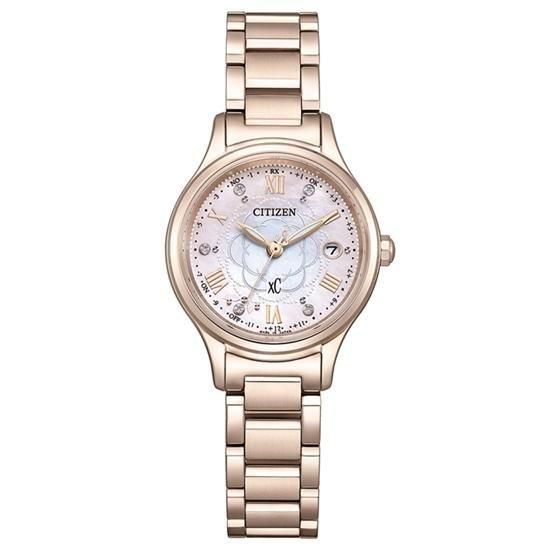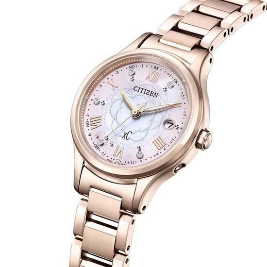 満開の美しいカメリア(椿)をモチーフにデザインした白蝶貝の文字板には、エッチングの花模様と“光の粒”が花びらに乗っているかのようなドットパターンを組み合わせ、愛らしさを表現しています。外周のピンクのグラデーションが、カメリアの華やかさと可愛らしさを引き立てています。